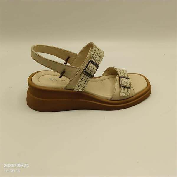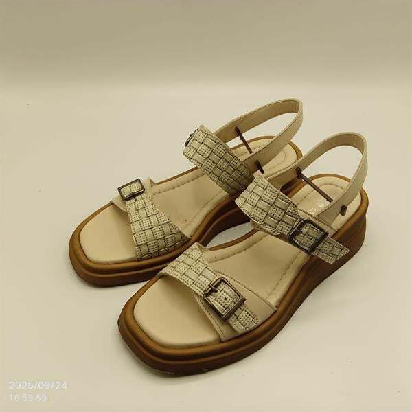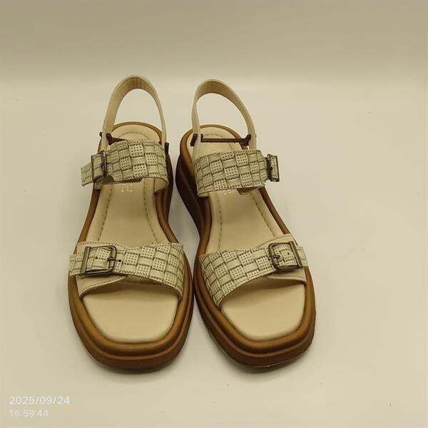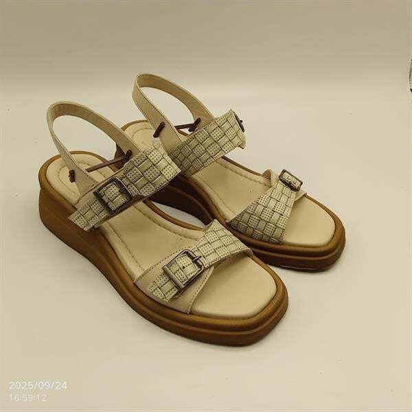 Açık yeşil - bej hasır sandalet, yaz kombinlerinin vazgeçilmez parçası olacak. %100 hakiki deri iç ve dış yüzeyi sayesinde ayak sağlığınızı korurken, nefes alan yapısıyla gün boyu konfor sunar. 1,5 cm ön ve 5 cm arka platform yüksekliği ile rahat bir topuk deneyimi yaşatır. Bilek ve parmak kısmındaki ayarlanabilir, kararma yapmayan tokaları sayesinde uzun ömürlü kullanım sağlar. Sadece 37 numara stokta ve indirimli fiyatıyla avantajlı bir fırsat!