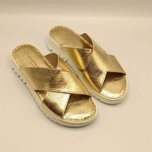Altın rengi, sofistike ve şık bir görünüm sunar. Derinin doğal parlaklığı ve altın renginin ışıltısı, terliklerinizi hem gündelik hem de özel günlerde kullanmanıza olanak tanır. Altın deri terlikler, basit bir kot ve tişört kombininden, zarif bir elbiseye kadar her türlü kıyafetle uyum sağlar. Bu çok yönlülük, gardırobunuza ek bir stil katmanı ekler.