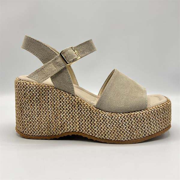 - Yazın zarif tonlarını stilinize taşıyan Agatha Bej Süet Dolgu Topuk Sandalet, 7.5 cm topuk ve 4 cm ön platformuyla konfor ve şıklığı bir arada sunar.