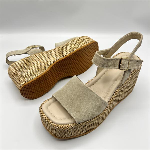 - Gerçek deri iç materyali, hafif EVA taban ve doğal hasır tekstil sargı kaplamasıyla her adımda rahatlık sağlar.