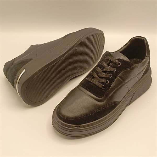 Ametist Exclusive Lena Siyah Kadın Deri Spor Ayakkabı, %100 hakiki deri ve el işçiliği ile üretilmiştir. Hafif ve esnek poliüretan tabanı, ayağınızı yormaz ve her adımda konfor sunar. 3 cm taban yüksekliği sayesinde hem rahat hem zarif bir görünüm elde edersiniz. Dört mevsim kullanıma uygun olmasıyla gardırobunuzun vazgeçilmez parçası olur.