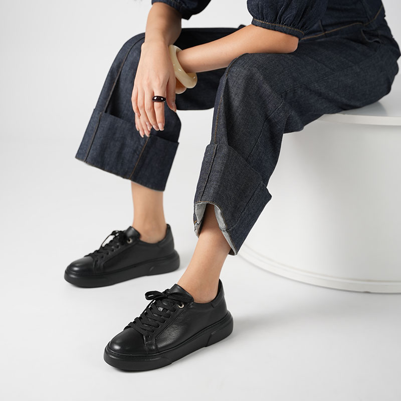 Anka Siyah Kadın Sneaker, gerçek deri iç ve dış materyaliyle uzun ömürlü kullanım sunan premium bir modeldir. Hafif ve kaymaz eva tabanı sayesinde gün boyu konfor sağlarken, tırtıklı yapısı ile farklı zeminlerde ekstra tutuş sağlar. Yumuşak iç tabanı ve yuvarlak burun formu, ayağı rahatça sararak günlük kullanıma mükemmel uyum sunar. Şehir stiline modern bir dokunuş katmak isteyenler için ideal bir sneaker modelidir.