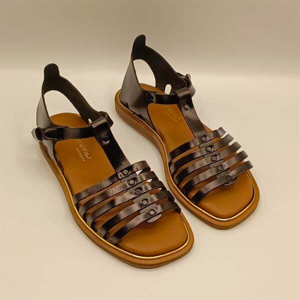 Ametist Exclusive Asta Siyah Deri Sandalet