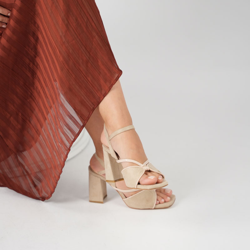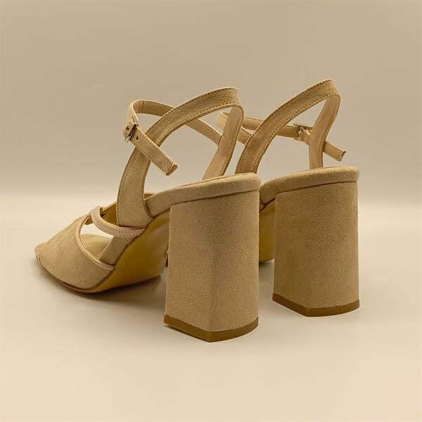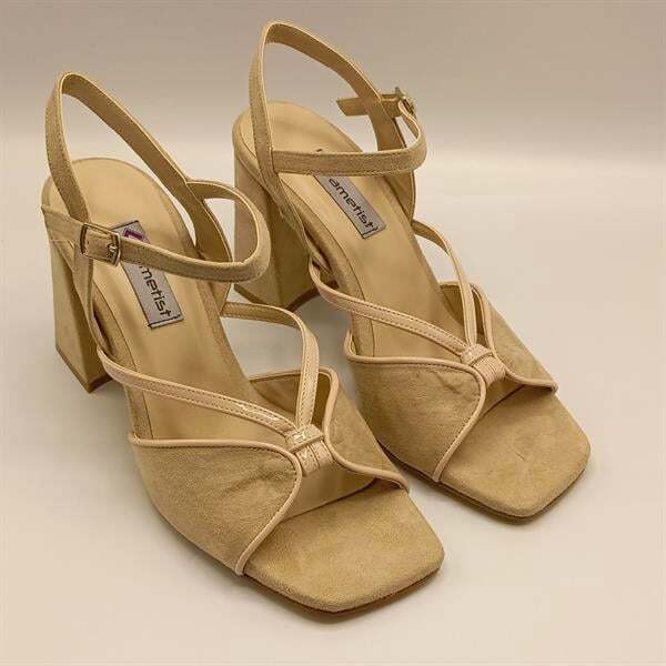 Ametist Exclusive Aster Bej / Siyah Topuklu Ayakkabı