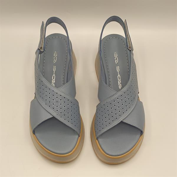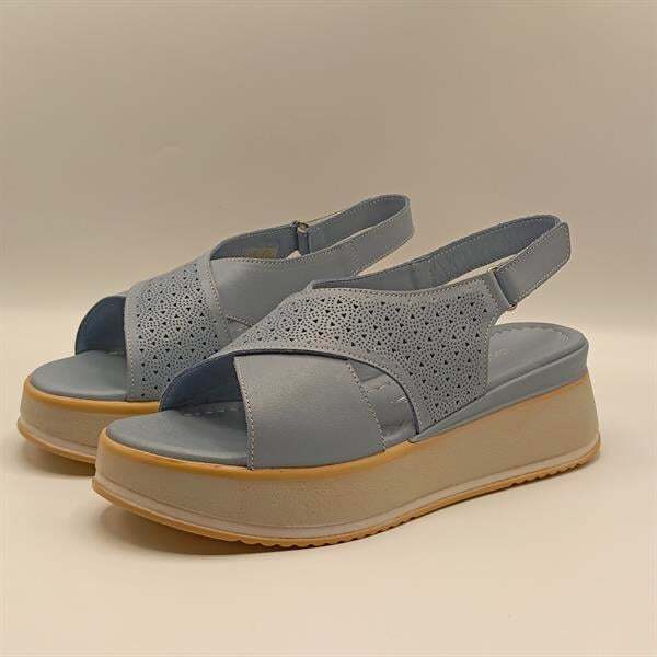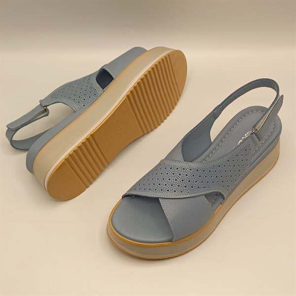 5 cm dolgu topuk yapısı, zarif bir duruş kazandırırken ayağınızı yormaz. Arka kısmında yer alan cırtlı bantları sayesinde ayağınıza tam uyum sağlar. %100 el işçiliği ile üretilen Athena modeli, mavi rengiyle dikkat çeken ve kullanımı pratik bir yazlık sandalet arayanlar için ideal.