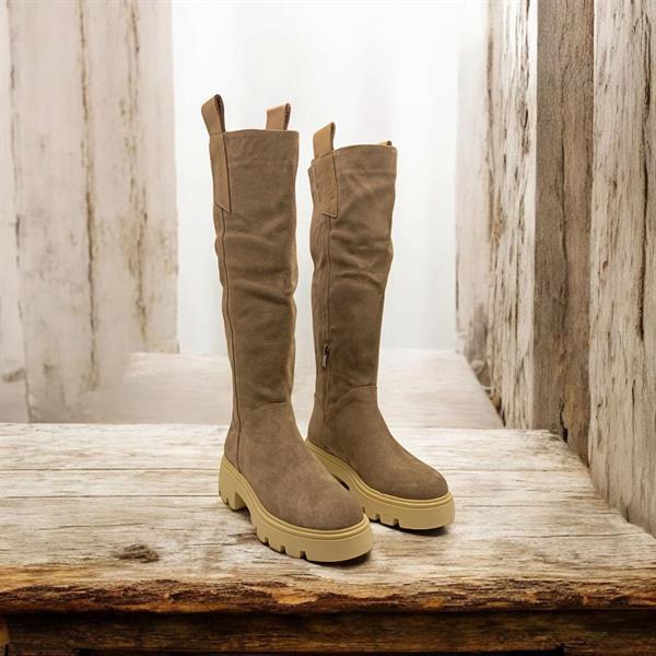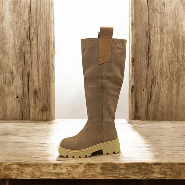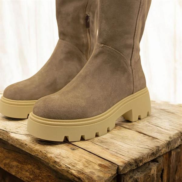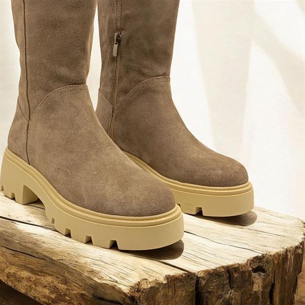 - Rahatlık ve şıklığı bir arada sunan Belicia kalın tabanlı vizon süet çizme, günlük kullanım için idealdir.