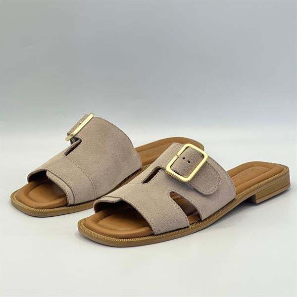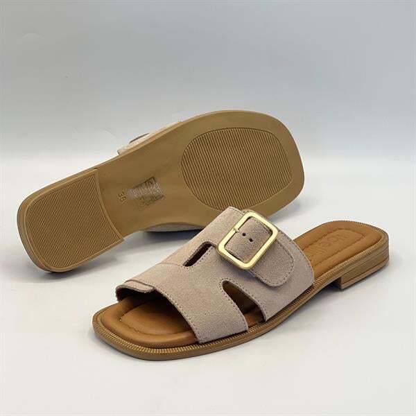Bellini bej süet tokalı terlik, doğal tonları ve konforlu yapısıyla yaz stilinize zarafet katıyor. Gerçek deri süet malzeme, el işçiliği detayları ve yumuşak termo tabanıyla her adımda konfor sağlar. Zamansız bej rengi sayesinde her kombinle uyum içinde. Günlük şıklığınızı tamamlayacak, her adımda sizi yormayacak bir model arıyorsanız Bellini tam size göre!
