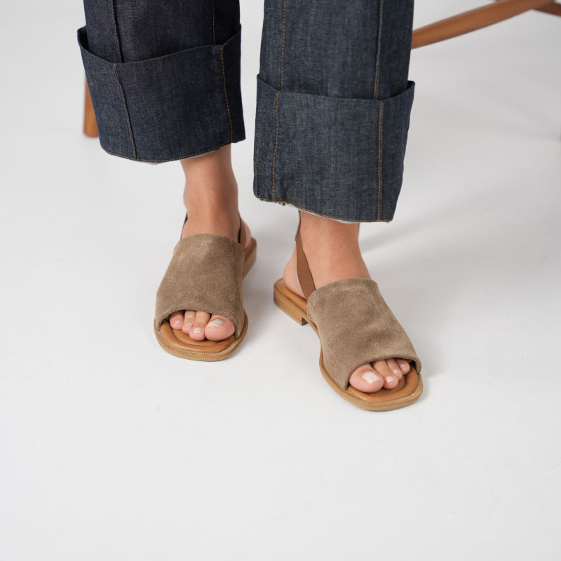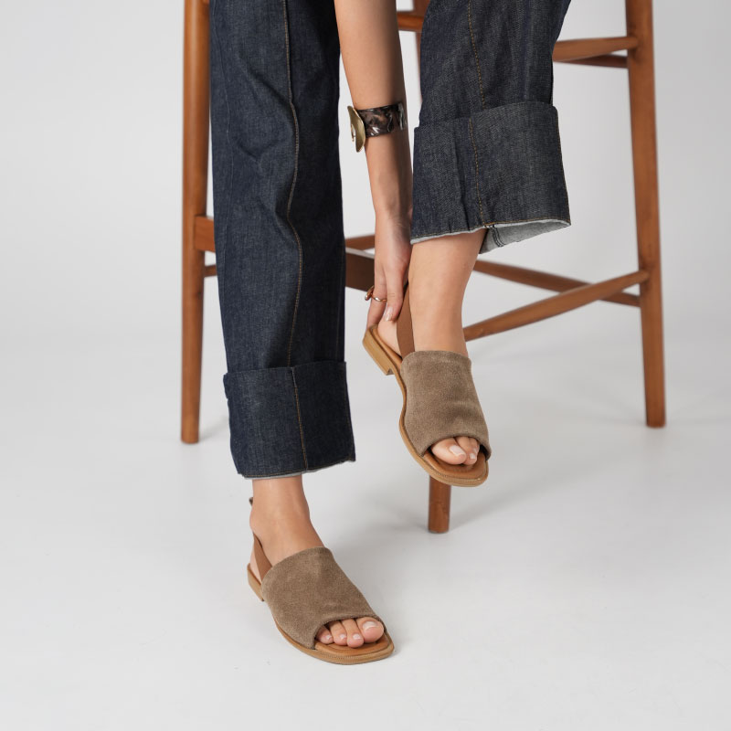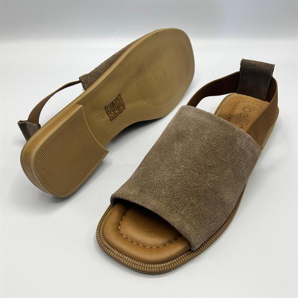 Bellini kahverengi süet sandalet, %100 el işçiliği ile üretilmiş gerçek deri süet yapısı ve 2 cm termo tabanıyla gün boyu konfor sunar. Elastik arka bandı sayesinde kolay kullanım sağlar. Şıklığı ve rahatlığı bir arada arayanlar için mükemmel bir tercihtir. Yaz aylarının vazgeçilmez parçası olacak bu sandalet, hem gündelik hem de şık kombinler için uygundur.