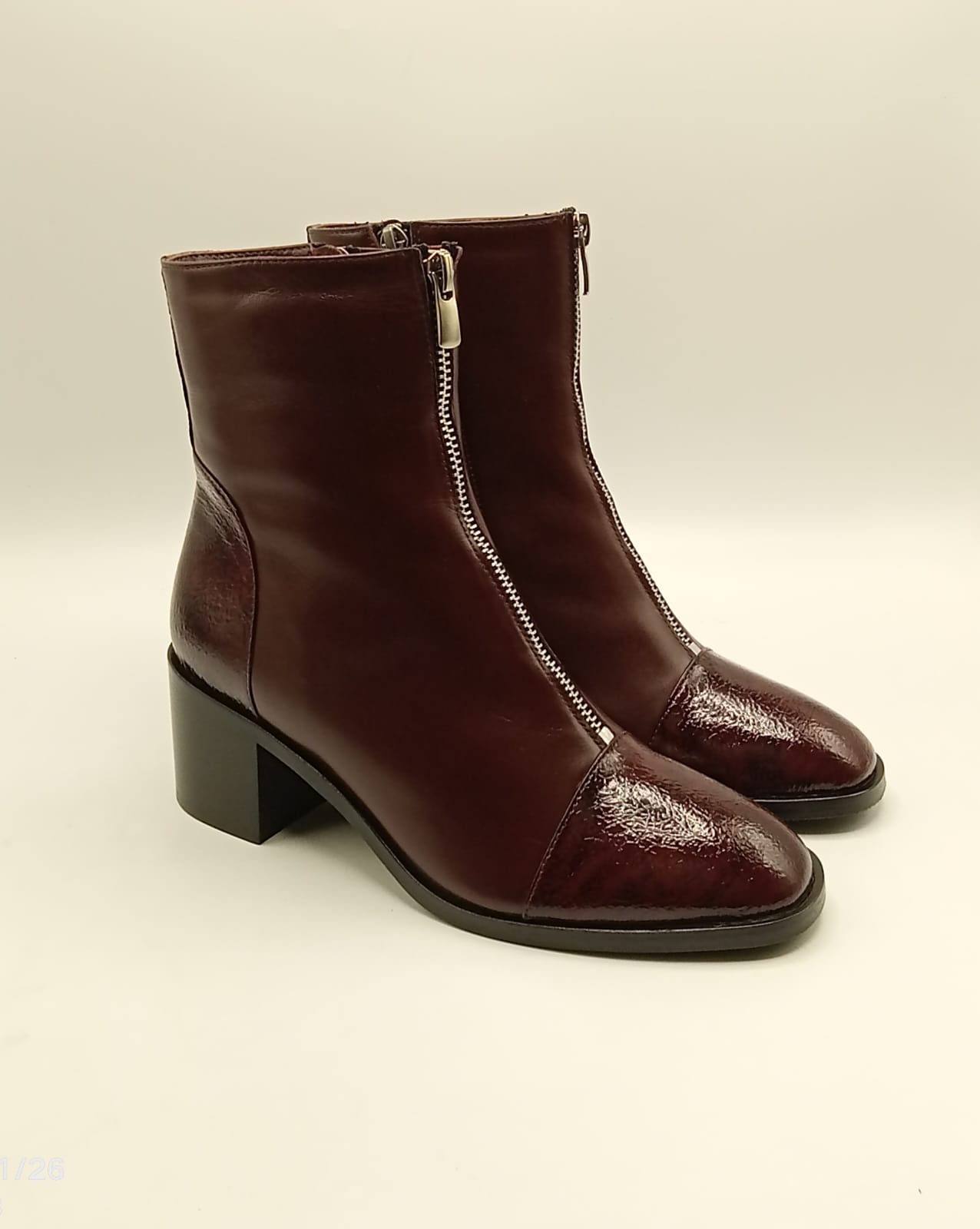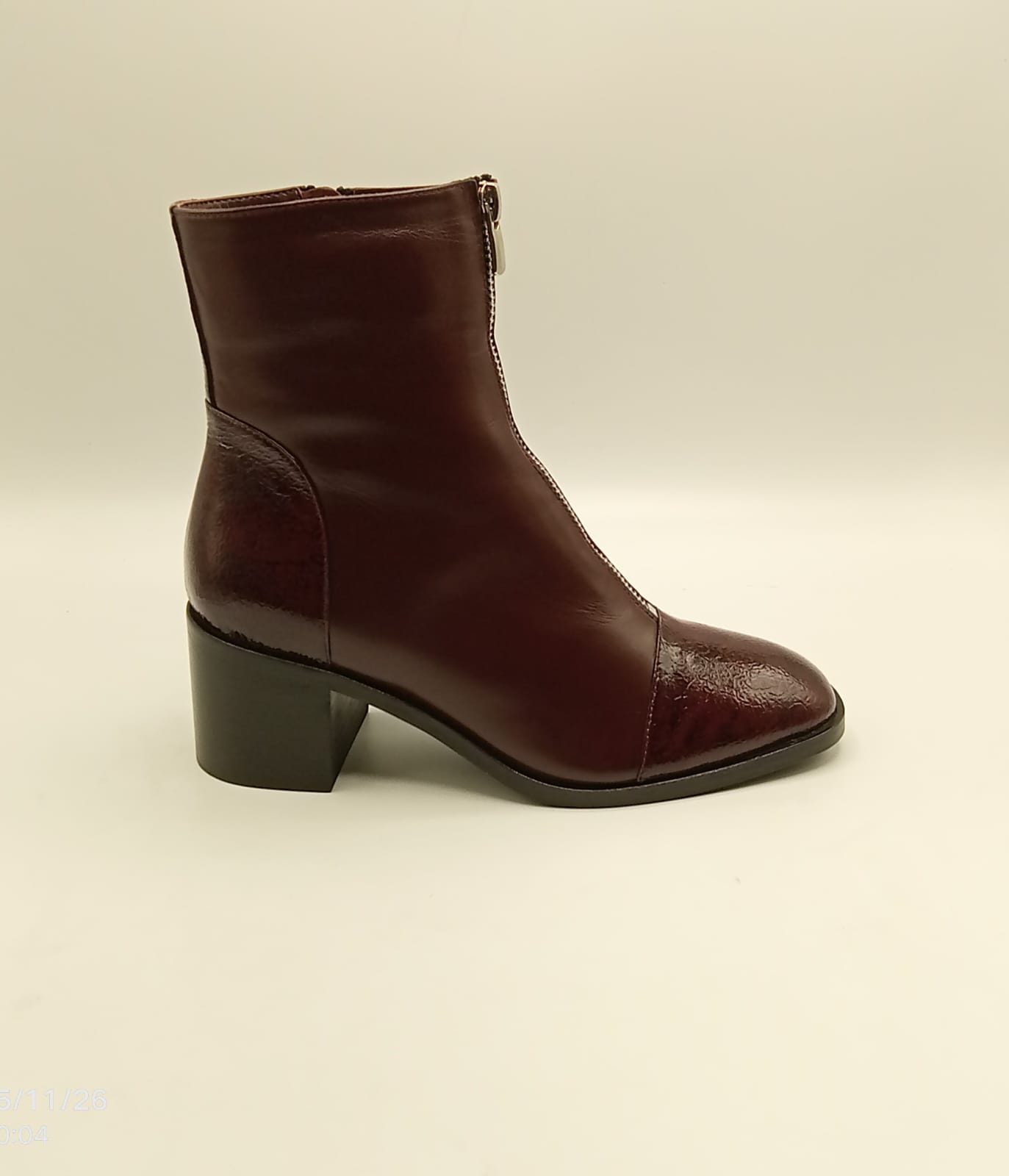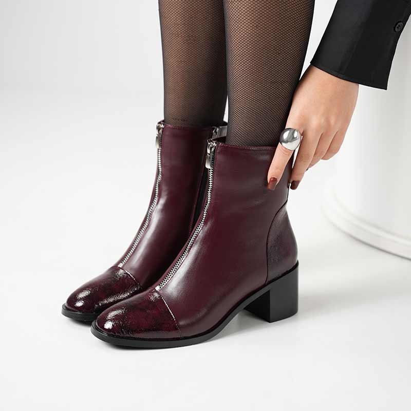 Clara Bordo Deri Kadın Bot, bordo rengin asil ve güçlü duruşunu kroko rugan detaylarla birleştirerek dikkat çekici bir stil sunuyor. Burun ve topuk kısmındaki parlak kroko rugan görünüm modeli daha lüks bir çizgiye taşırken, orta fermuar aksesuarı modern ve karakteristik bir hava katar.