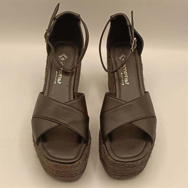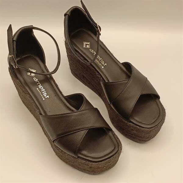 - Şıklığı doğallıkla buluşturan Ametist Exclusive Deka Siyah Dolgu Topuk Sandalet, %100 hakiki deri iç ve dış materyali ile ayak sağlığınızı korurken, özel el işçiliği ile üretilmiş dolgu topuğu sayesinde maksimum rahatlık sunar.