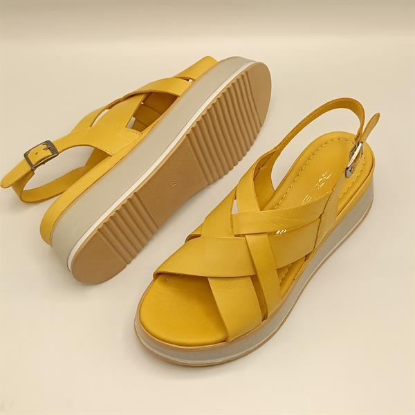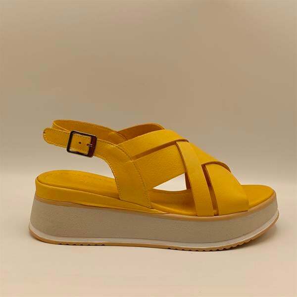 Ametist Exclusive Garda Sarı Dolgu Topuk Sandalet, yaz aylarında tarzını renklendirmek isteyen kadınlar için özel olarak tasarlandı. %100 hakiki deri iç ve dış yüzeyi ile ayak sağlığını korurken, esnek tabanı sayesinde gün boyu konfor sunar.