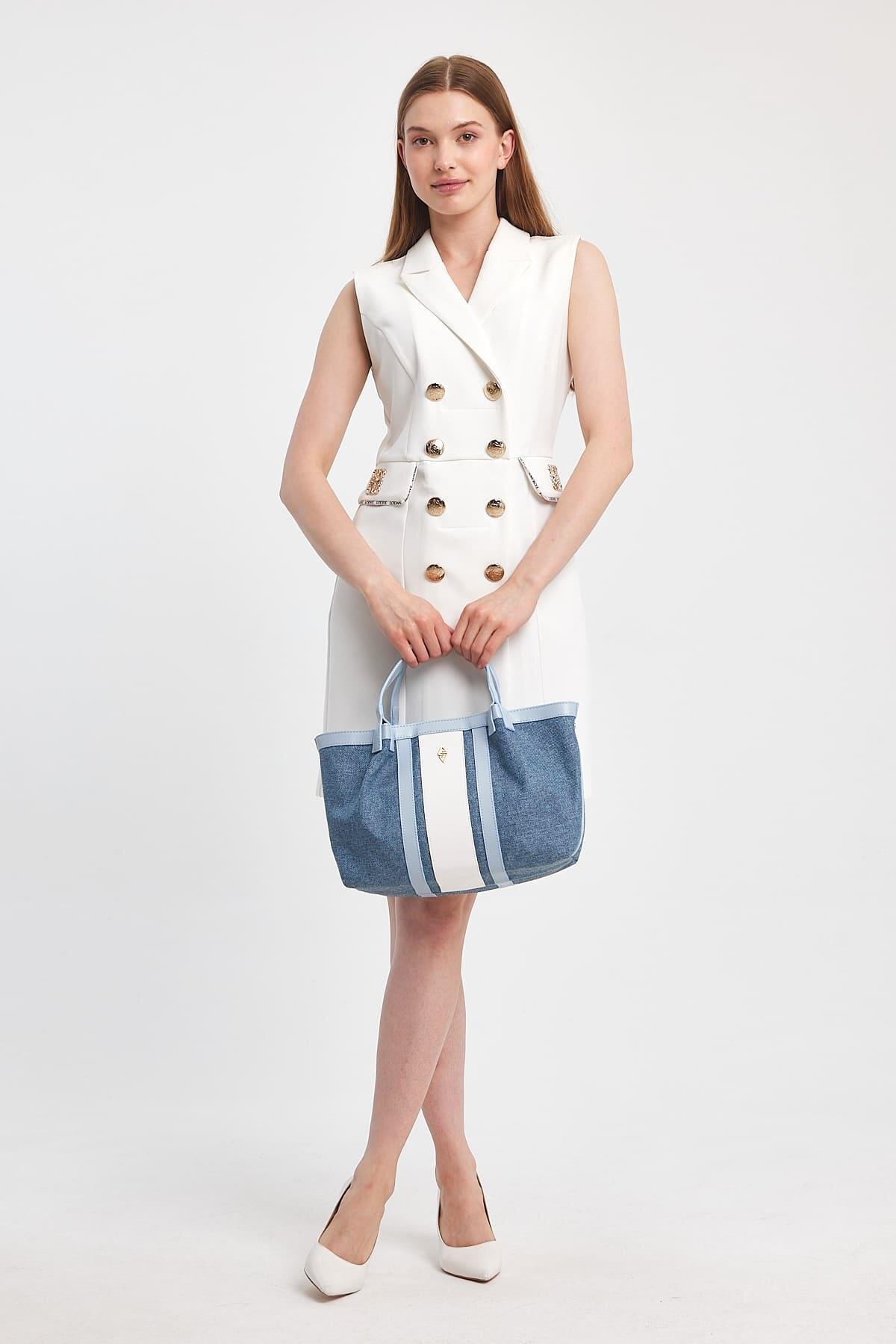 Havana Gökyüzü Mavisi Kumaş Detaylı Kadın El Çantası