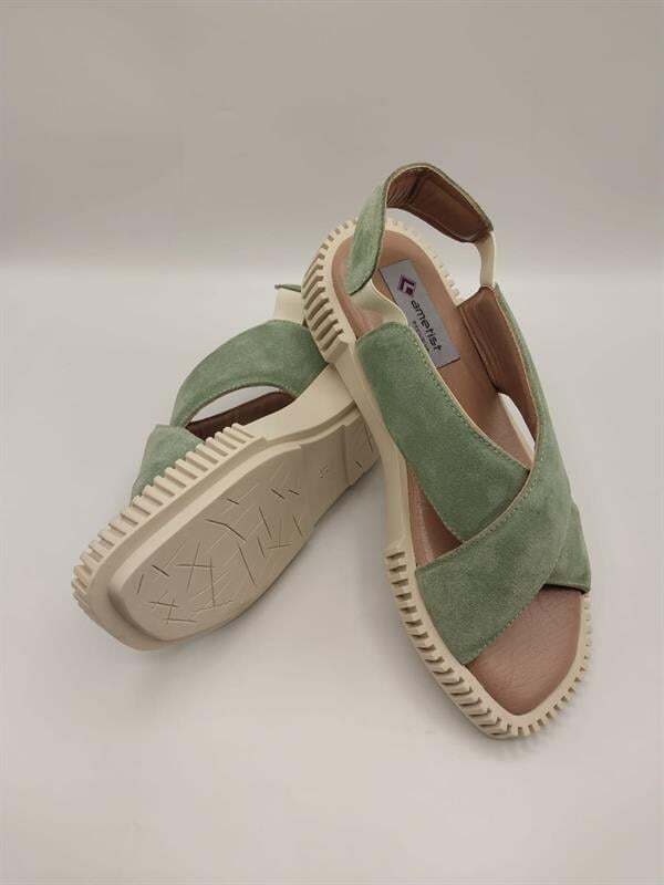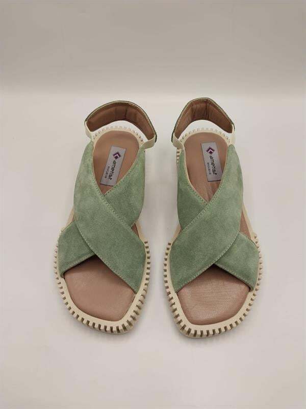 Modern ve enerjik tasarımıyla öne çıkan Juana Yeşil Süet Sandalet, %100 hakiki deri iç yapısı ve süet dış yüzeyiyle hem şıklığı hem de konforu bir arada sunuyor. Kaymaz ve tırtıklı termo light tabanı ile güvenli adımlar sağlar. 3 cm topuk yüksekliğiyle gün boyu rahatlık sunan bu model, günlük ve şehir şıklığının vazgeçilmez parçası olacak.