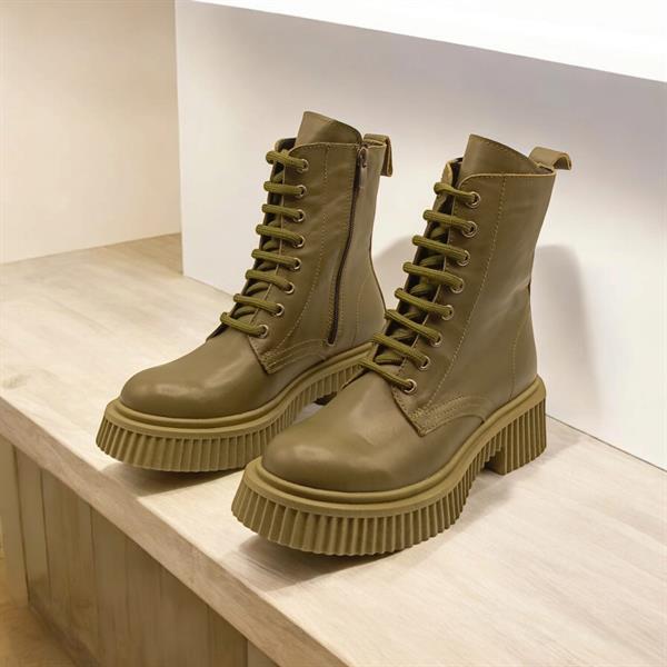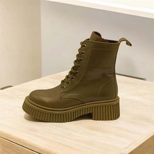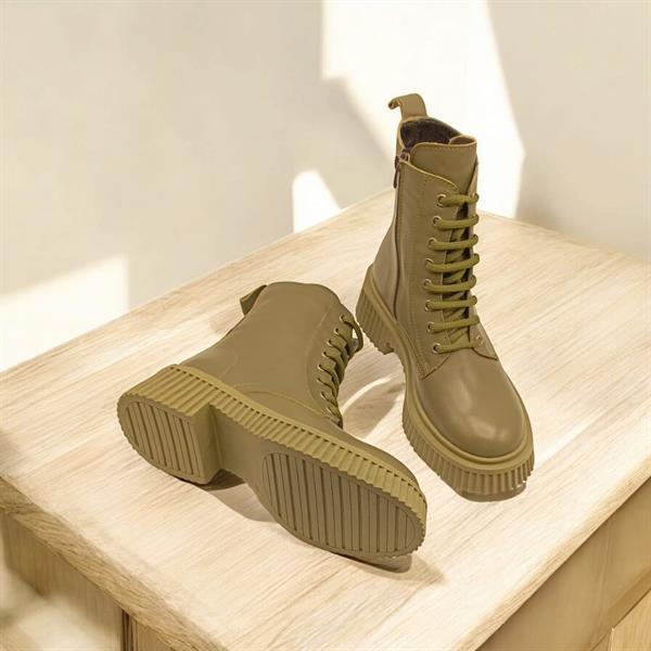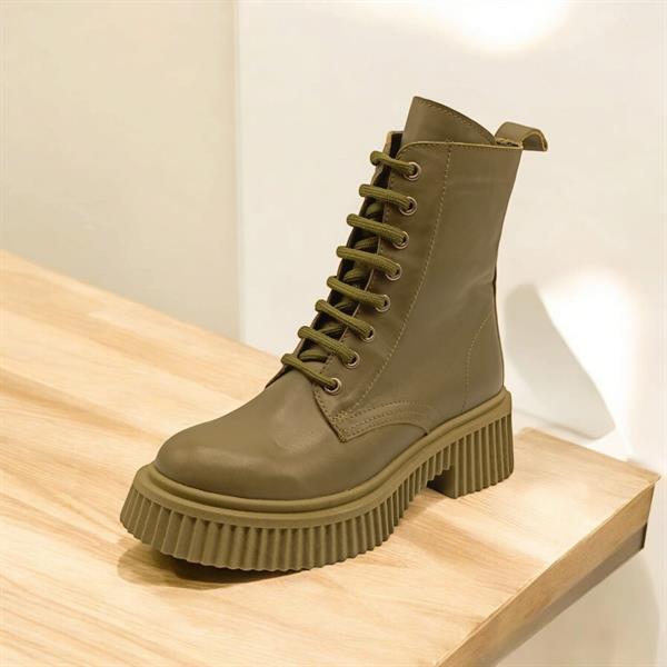 - Rahatlık ve şıklığı bir arada sunan haki deri bot, günlük kullanım için idealdir.