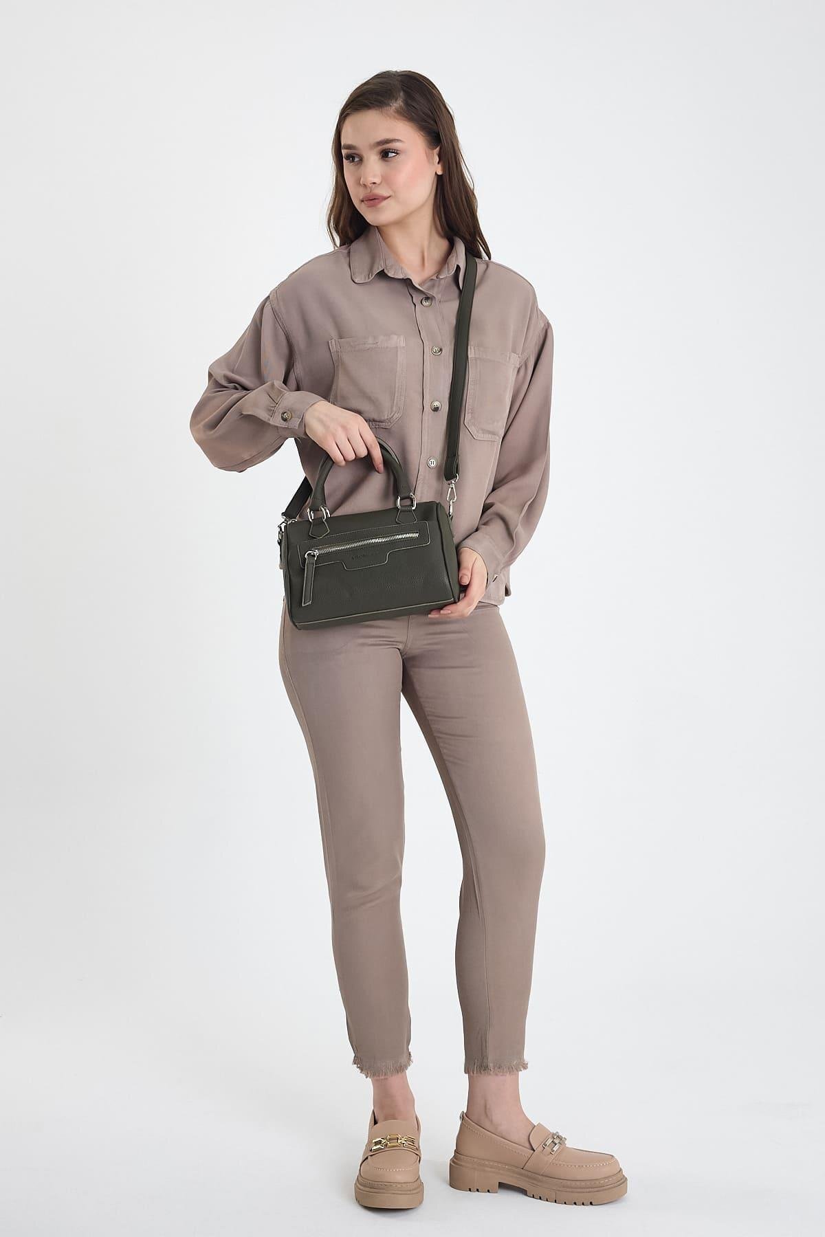 Lorena Haki Çok Gözlü Kadın El Çantası