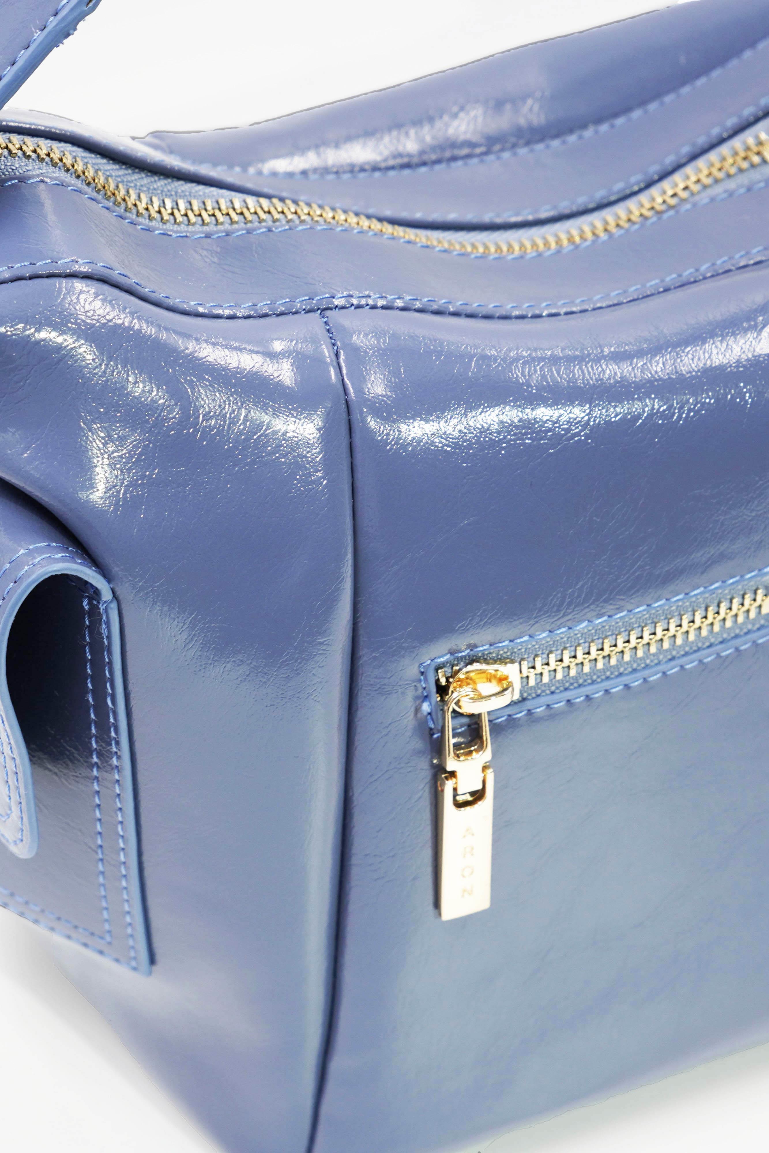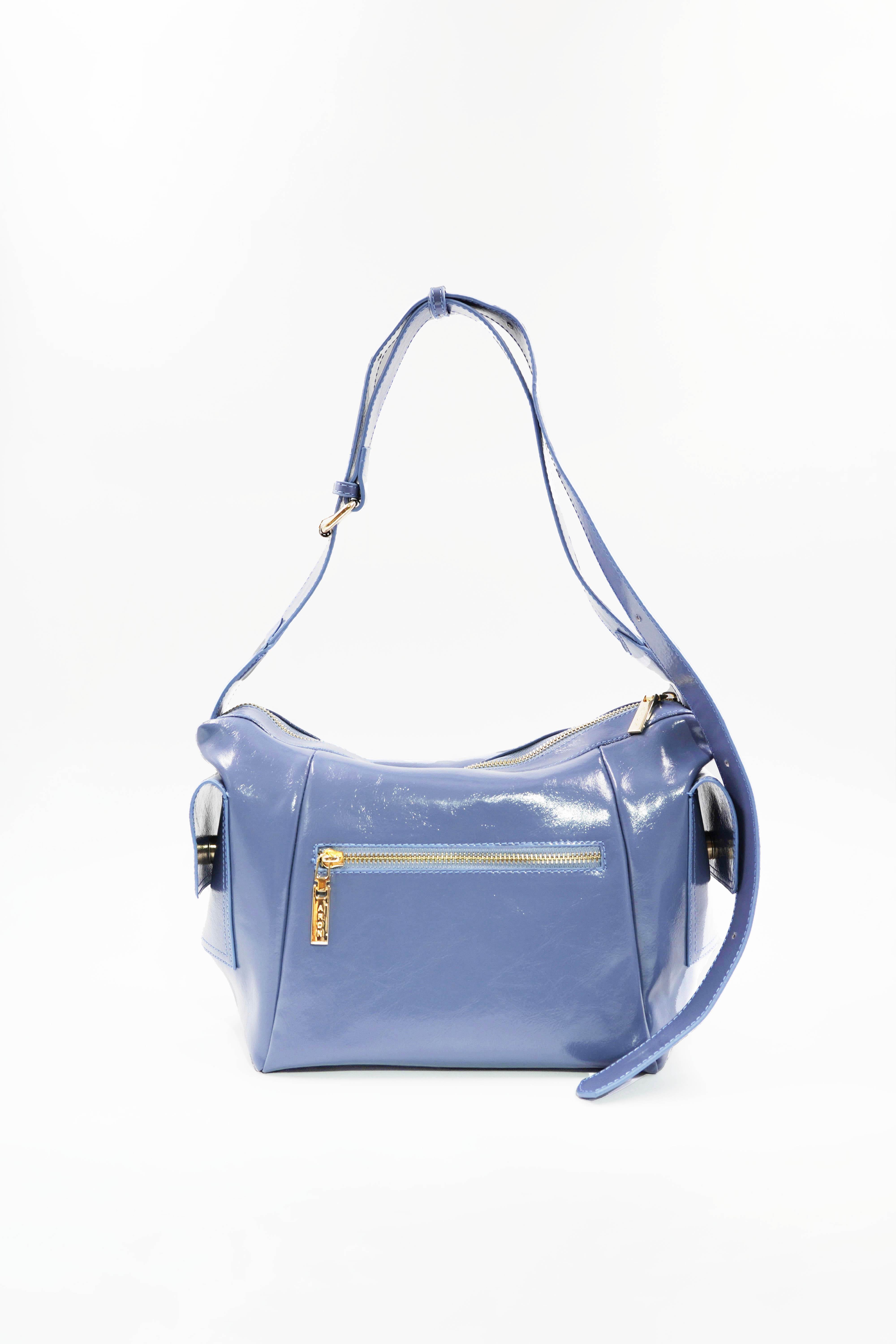 Martina Mavi Kırışık Mat Rugan Kadın Omuz ve Çapraz Çantası 2317