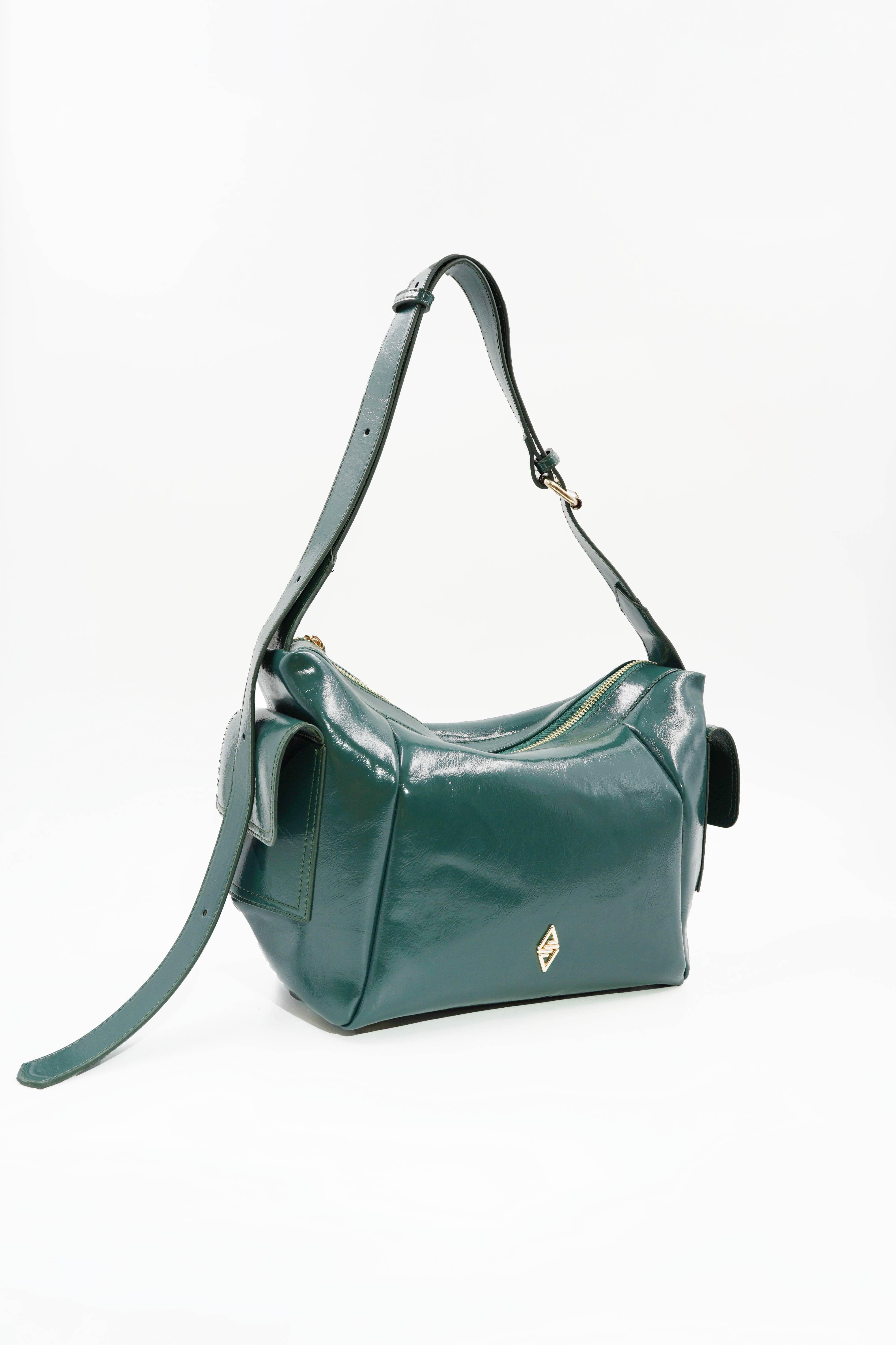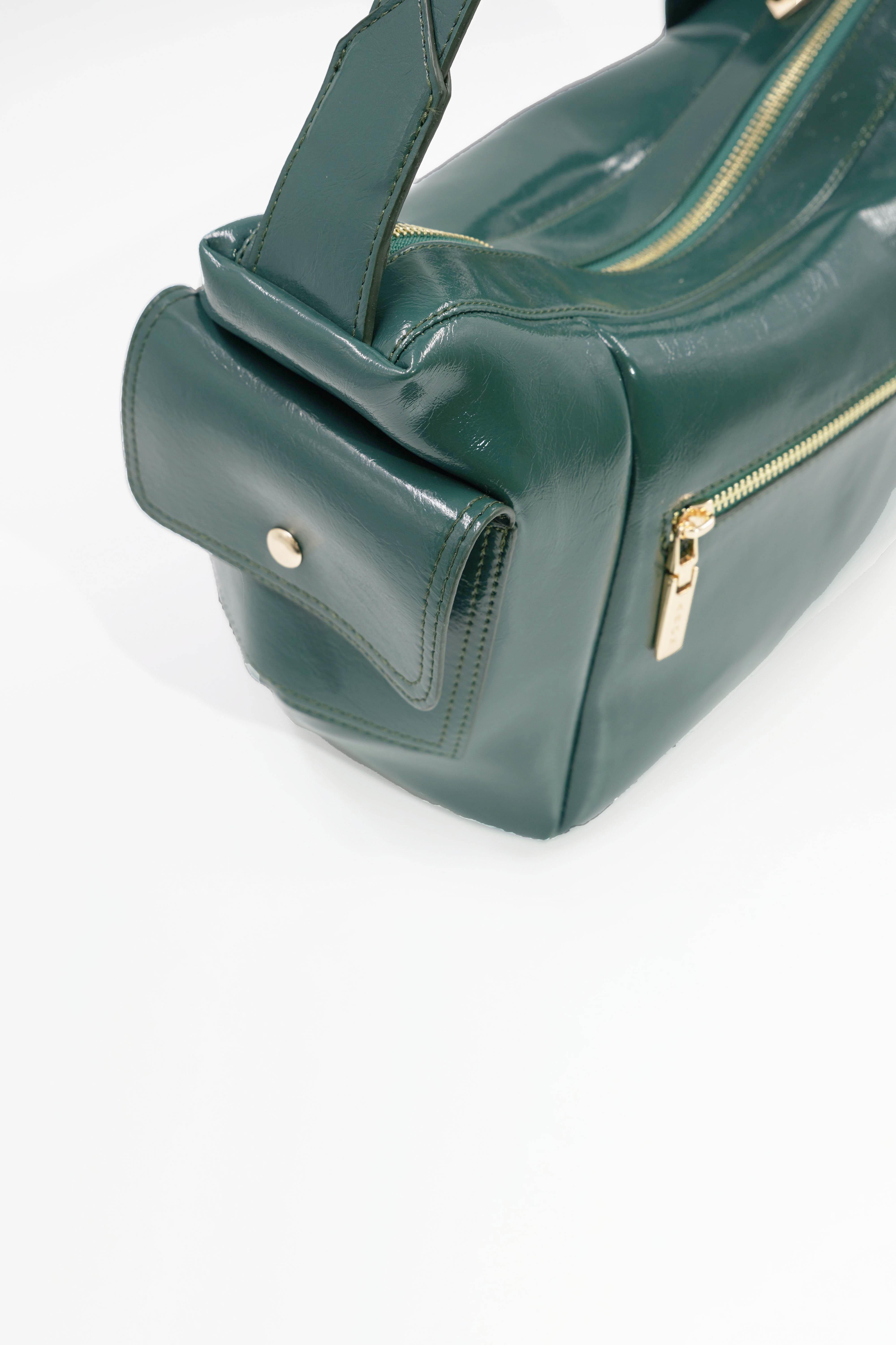 Martina Yeşil Kırışık Mat Rugan Kadın Omuz ve Çapraz Çantası 2317