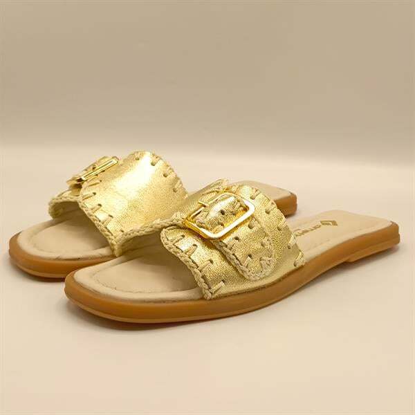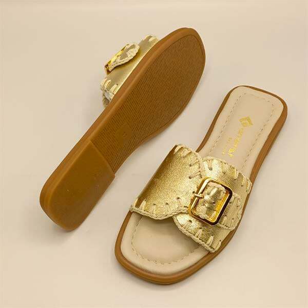 Ametist Exclusive Altın Otantik Terlik, %100 hakiki deri iç ve dış materyaliyle hem şıklığı hem konforu bir araya getiriyor. El işçiliğiyle özenle üretilen bu özel model, örgü detaylarıyla etnik stil seven kadınlara hitap ediyor. Termo tabanı hafif ve tırtıklı yapısı sayesinde kaymaz. Tokalı tasarımıyla ayağınıza tam oturur, gün boyu yormaz. Terletmeyen ve kayma yapmayan yapısı sayesinde yaz aylarının vazgeçilmezi olmaya aday. Günlük kullanım için rahat, estetik ve uzun ömürlü bir tercihtir.