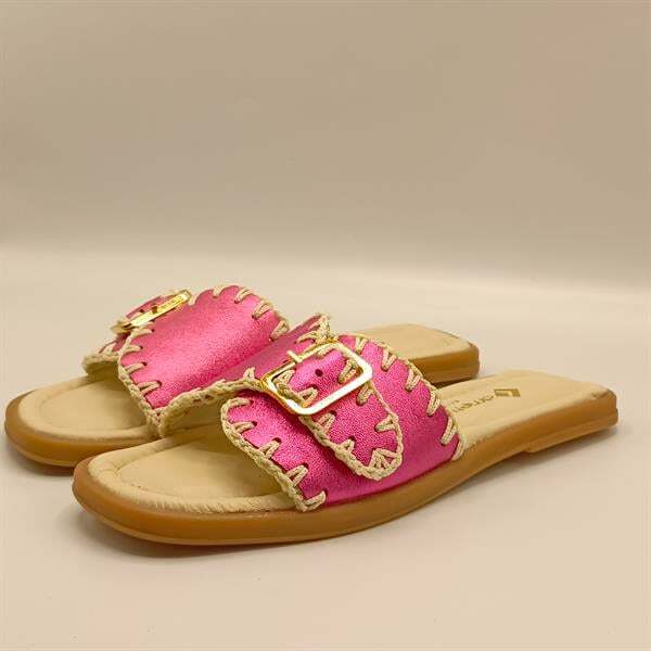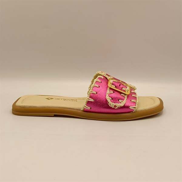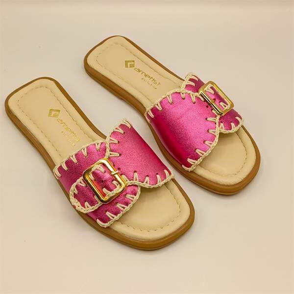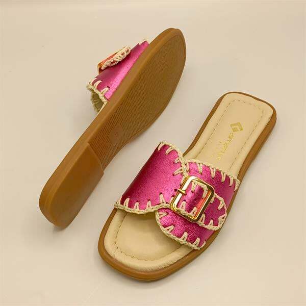 Ametist Exclusive Fuşya Otantik Terlik, enerjik rengi ve el işçiliği örgü detaylarıyla yaz aylarına hareket katıyor. %100 hakiki deri iç ve dış yüzeyi sayesinde ayakta terleme ve kayma yapmaz. Hafif termo tabanı ve tırtıklı yapısı ile güvenli adımlar sunar. Tokalı tasarımı sayesinde ayağınıza tam uyum sağlar. Günlük kullanımda hem şıklığı hem de konforu bir arada arayan kadınlar için mükemmel bir seçim!