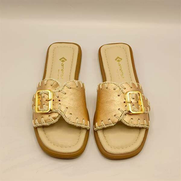 Ametist Exclusive Rose Otantik Terlik, %100 hakiki deri iç ve dış materyaliyle hem şıklığı hem konforu bir araya getiriyor. El işçiliğiyle özenle üretilen bu özel model, örgü detaylarıyla etnik stil seven kadınlara hitap ediyor. Termo tabanı hafif ve tırtıklı yapısı sayesinde kaymaz. Tokalı tasarımıyla ayağınıza tam oturur, gün boyu yormaz. Terletmeyen ve kayma yapmayan yapısı sayesinde yaz aylarının vazgeçilmezi olmaya aday. Günlük kullanım için rahat, estetik ve uzun ömürlü bir tercihtir.