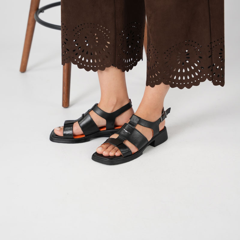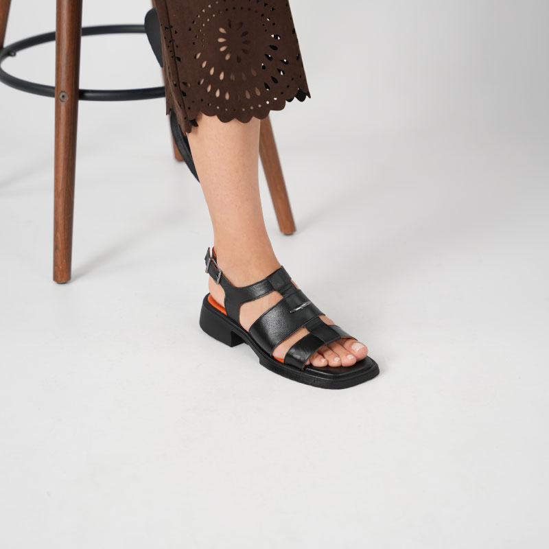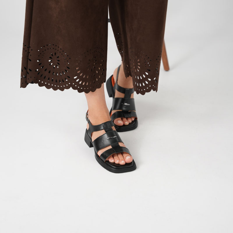 Perge Siyah Gerçek Deri Kadın Sandalet
