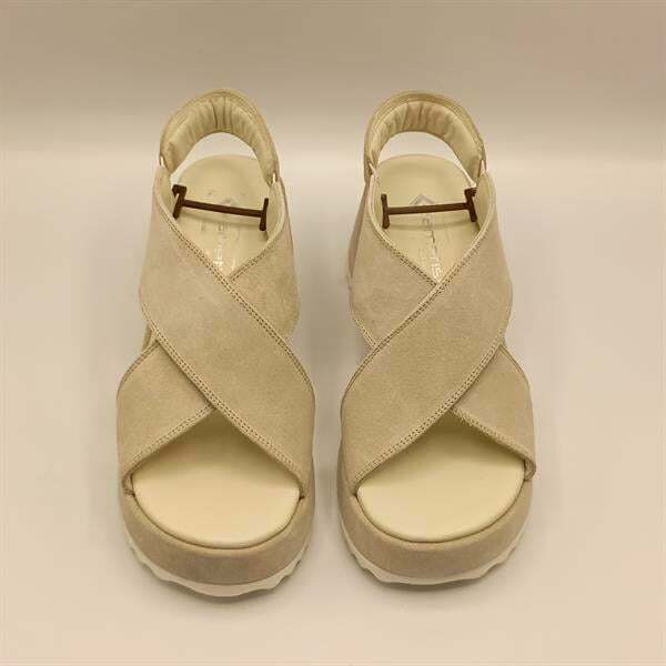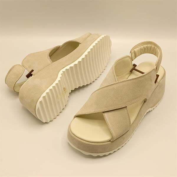 Ametist Exclusive Sindy Bej Dolgu Topuk Sandalet, zarif bej rengi ve şık tasarımıyla yaz aylarının vazgeçilmezi olacak! %100 hakiki deri süet dış materyali ve deri iç materyali sayesinde uzun süreli konfor sunar. Tabanı esnek ve ayağınızı yormazken, arkasındaki lastikli bantlar ayağınızı sıkıca sarar ve kaymayı engeller. Dolgu topuk tasarımı ise rahatlıkla şıklığınızı tamamlar.