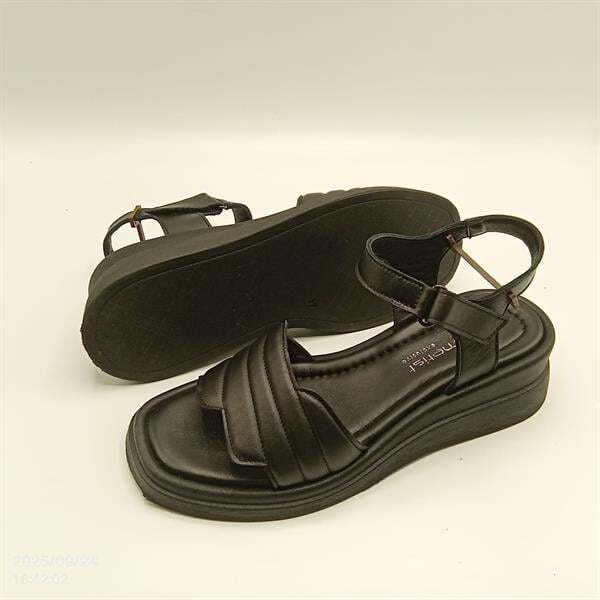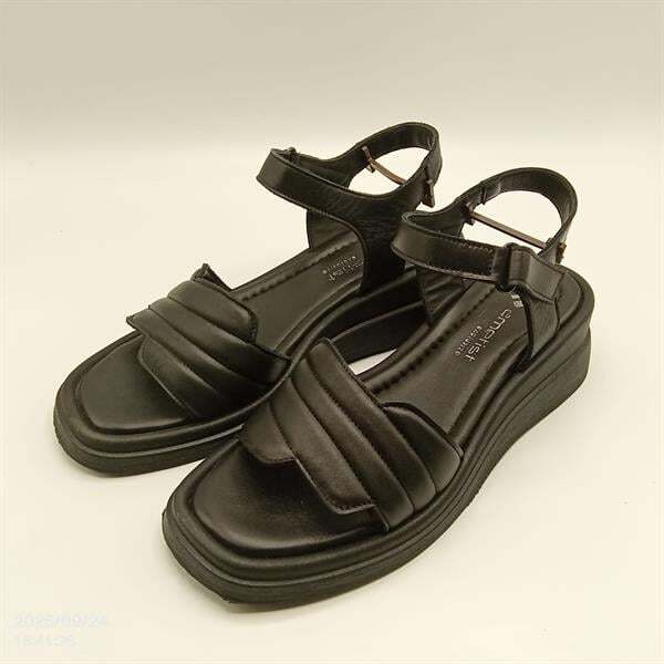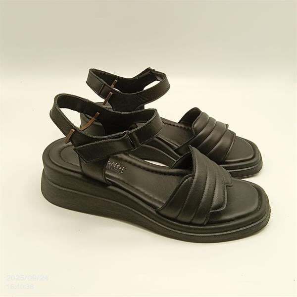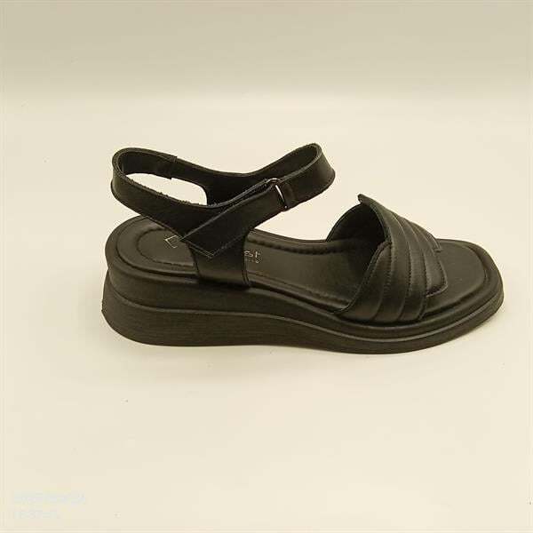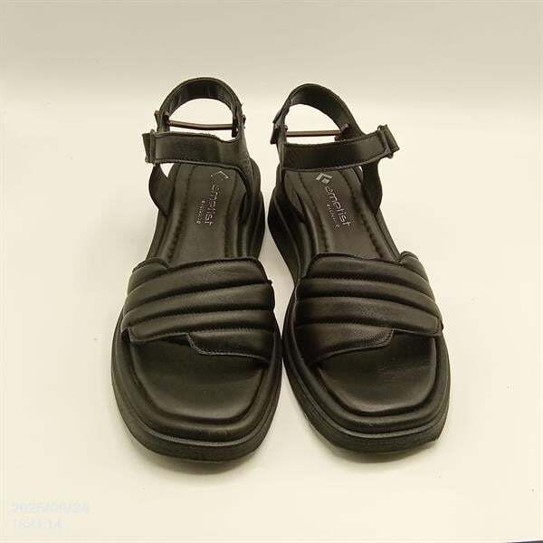 Siyah hakiki deri sandalet, üst kısmındaki kanat formundaki bant detayı ile modern ve şık bir görünüm sunuyor. 1,5 cm ön ve 5 cm arka platform yüksekliği sayesinde gün boyu konfor sağlarken, poli tabanı ile hafif ve dayanıklı bir kullanım deneyimi sunar. Arkadan ayarlanabilir kararma yapmayan tokaları ile uzun ömürlü kullanım için tasarlanmıştır. Sadece 37 numara stokta bulunan bu özel model, indirimli fiyatıyla kaçırılmayacak bir fırsat!