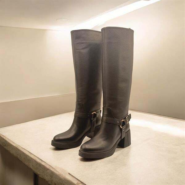 Sonya Topuklu Siyah Deri Kadın Çizme