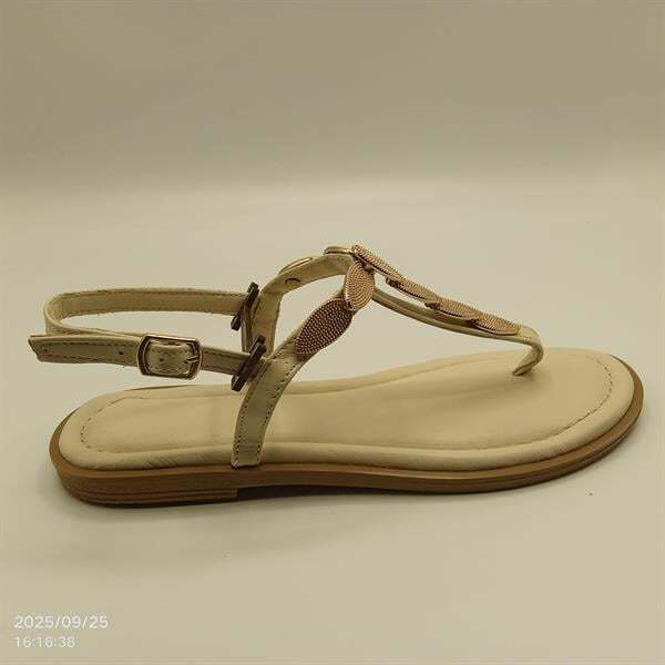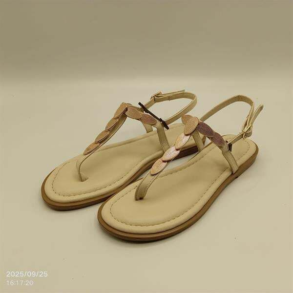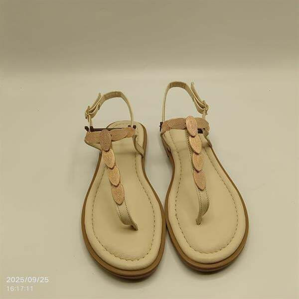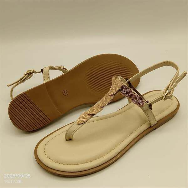 Minimalist ve zarif tasarımıyla öne çıkan Sunny Bej Parmak Arası Sandalet, %100 hakiki deri iç ve dış yapısıyla gün boyu konfor sunar. Kararma yapmayan altın rengi toka detayı modele şıklık katarken, 1 cm TPU tabanı kaymaz yapısıyla güvenli adımlar sağlar. Bilekten tokalı bağlama özelliğiyle ayağa tam oturur, günlük ve yazlık kombinler için ideal bir tercihtir.